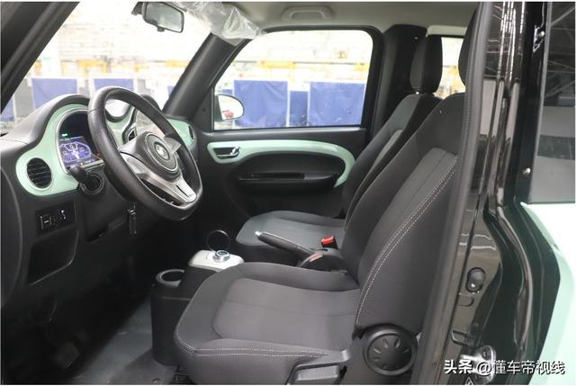 车内设计较为可爱,中控部分造型和MINI有些相似,中控屏尺寸为9英寸,但车机功能并不算太丰富,只提供一些基础功能。仪表盘采用了6.2英寸全液晶屏,可以显示多项车辆参数,还带有胎压监测功能。