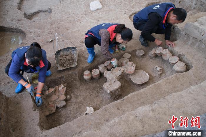 此外,在下汤遗址中心台地东部,研究人员已经发现陶器坑、陶器堆超20余处,涵盖罐、杯、盘、盆、碗等多种器型。